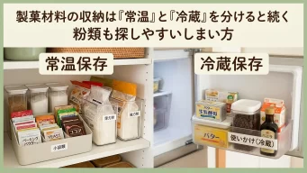 製菓材料の収納は常温と冷蔵を分けると続く 粉類も探しやすいしまい方