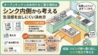 オープンキッチンの水切りかご置き場所はシンク内側から考える 生活感を出しにくい決め方