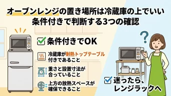 オーブンレンジの置き場所は冷蔵庫の上でいい 条件付きで判断する3つの確認