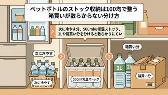 ペットボトルのストック収納は100均で整う 箱買いが散らからない分け方