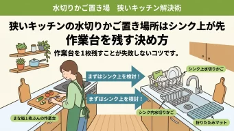 狭いキッチンの水切りかご置き場所はシンク上が先 作業台を残す決め方
