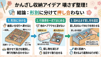 かんざしの収納アイデアは形別に分けて押し合わないと続く 壊しにくいしまい方